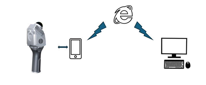 手持激光扫描仪实时远程传输功能,主要指在手持激光扫描仪进行数据采集过程中,通过手机网络、局域网等进行数据远程发送和接收的过程,用于对实时数据获取有强烈需求的应用场景。