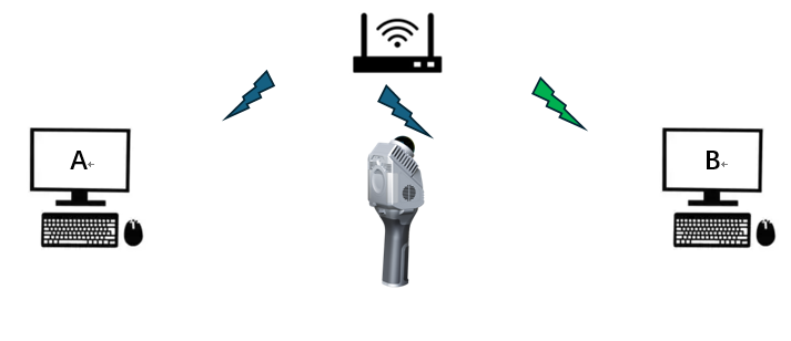 步骤一:将手持激光扫描仪设备连入无线局域网中,将 PC 端连入同一个局域网中;
