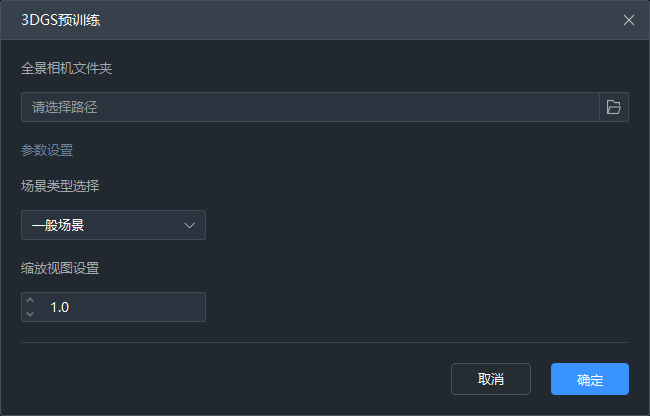 选择全景相机INSV文件所在文件夹路径后点击确认即可开始3DGS预训练.