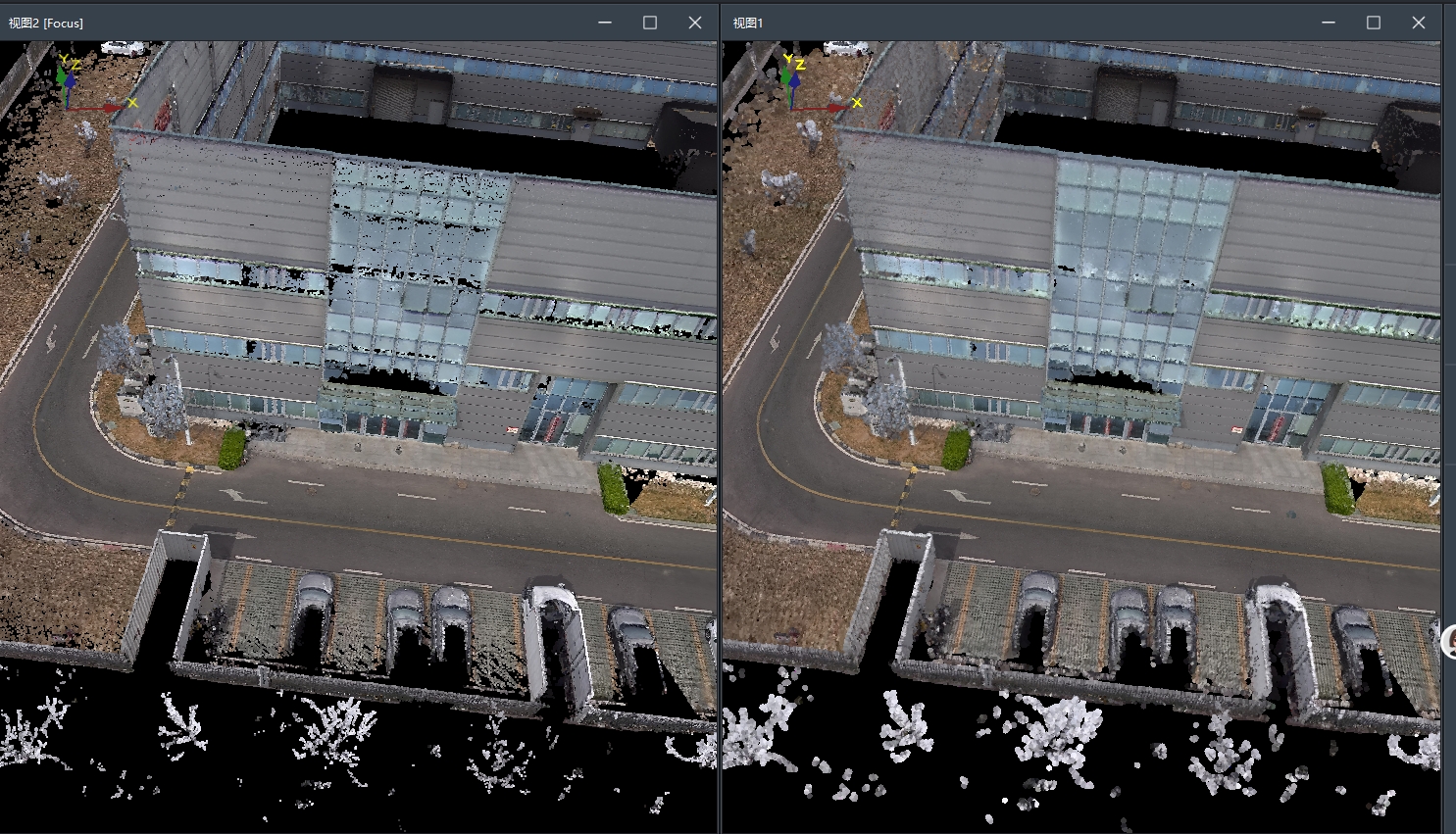 【强度滤波】通过对低强度点云滤波算法,减少由于玻璃反射形成的反射噪声。
