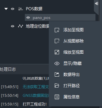 在工程列表窗口中,选中POS文件,右键,即可调用相关功能。