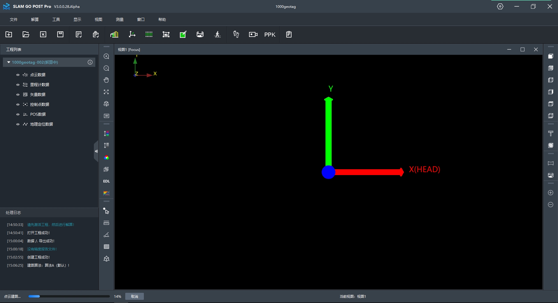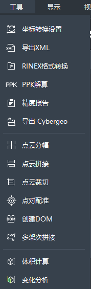 位于软件界面最上方的菜单栏,涵盖SLAM GO POST Pro所有的功能和设置内容,分为文件、解算、工具、显示、视图、测量、窗口、帮助。