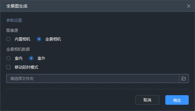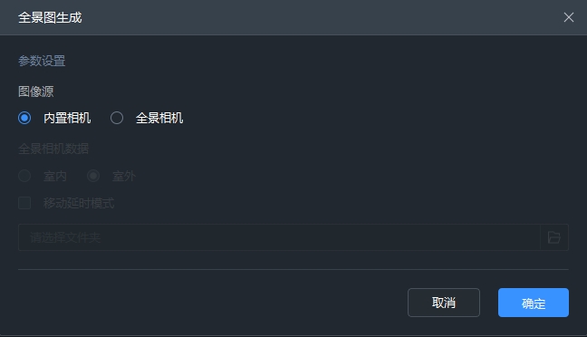 输出全景图拼接成果,分为内置相机和全景相机两项选项。