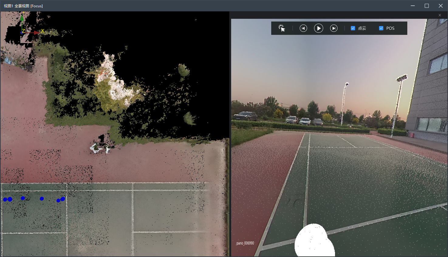 其中当前视图通过鼠标左键点击激活当前视图,剖面视图、全景视图窗口使用时与当前激活视图共同启动,分别通过【剖面】、【全景图】功能调用。