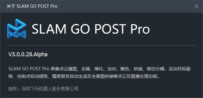 SLAM GO POST为与飞马手持激光扫描仪配套的PC端软件,内嵌在无人机管家专业版中。该软件支持处理飞马全系列手持激光扫描仪所采集的数据。融合行业级高精度建图算法,可生产高精度、高精细度的彩色点云成果及全景图成果。