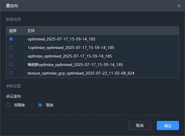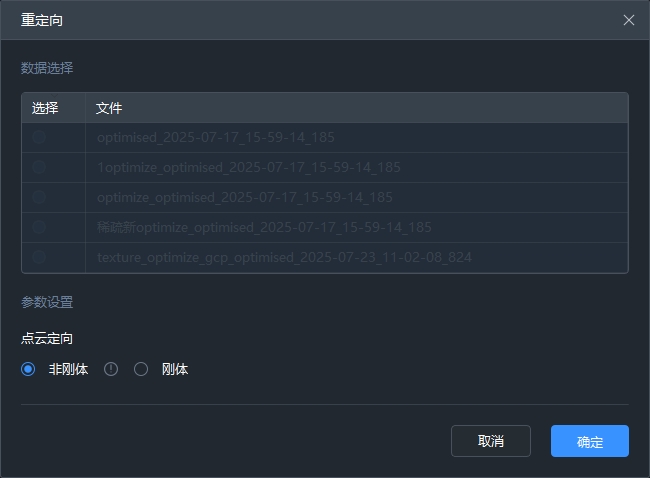 注:非刚体定向无需选择点云,默认基于建图成果处理。