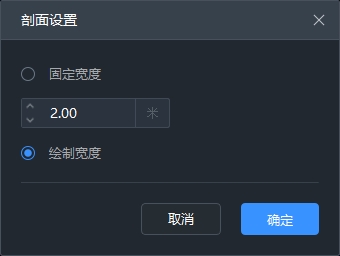 剖面宽度设置,可设置固定宽度、绘制宽度模式旋转,固定宽度的半径值设置。