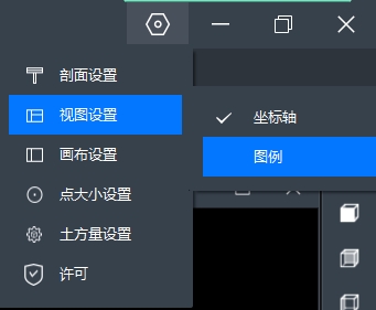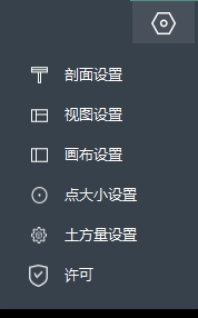 右上角【设置】菜单包括剖面设置、视图设置、画布设置、点大小设置、土方量设置、许可。