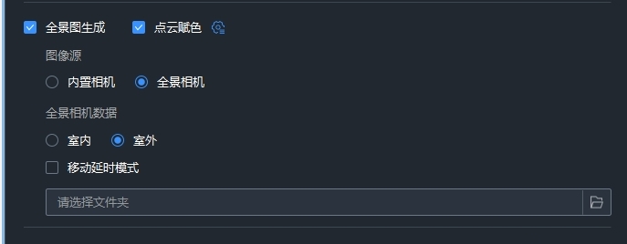 【图像源】:全景图和赋色的拼接图像来源,分为内置相机和全景相机。