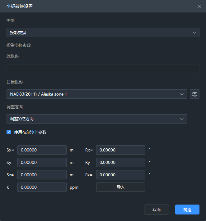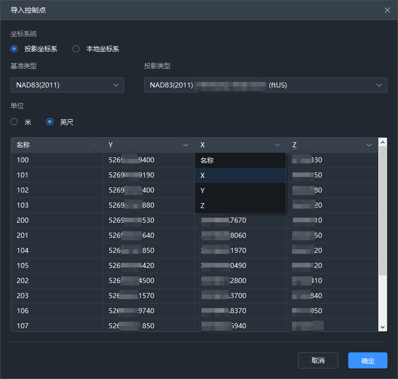 【投影类型】修改控制点文件的投影坐标系统