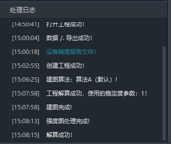 处理日志为工程日志输出窗口,任务执行状态、成功/失败提示显示在该窗口中。