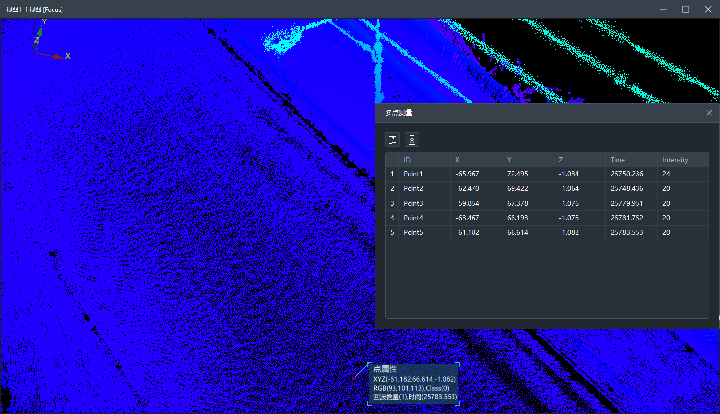 软件同样支持多种点云渲染方式,包括高程、强度、纹理、透视、EDL等模式,并可按采集轨迹进行自动漫游展示。多样化的量测功能,支持点、线、面等多种方式的测量输出。其简洁的界面分布,引导式的工程创建,结合一键式的处理流程,便于客户快速掌握。