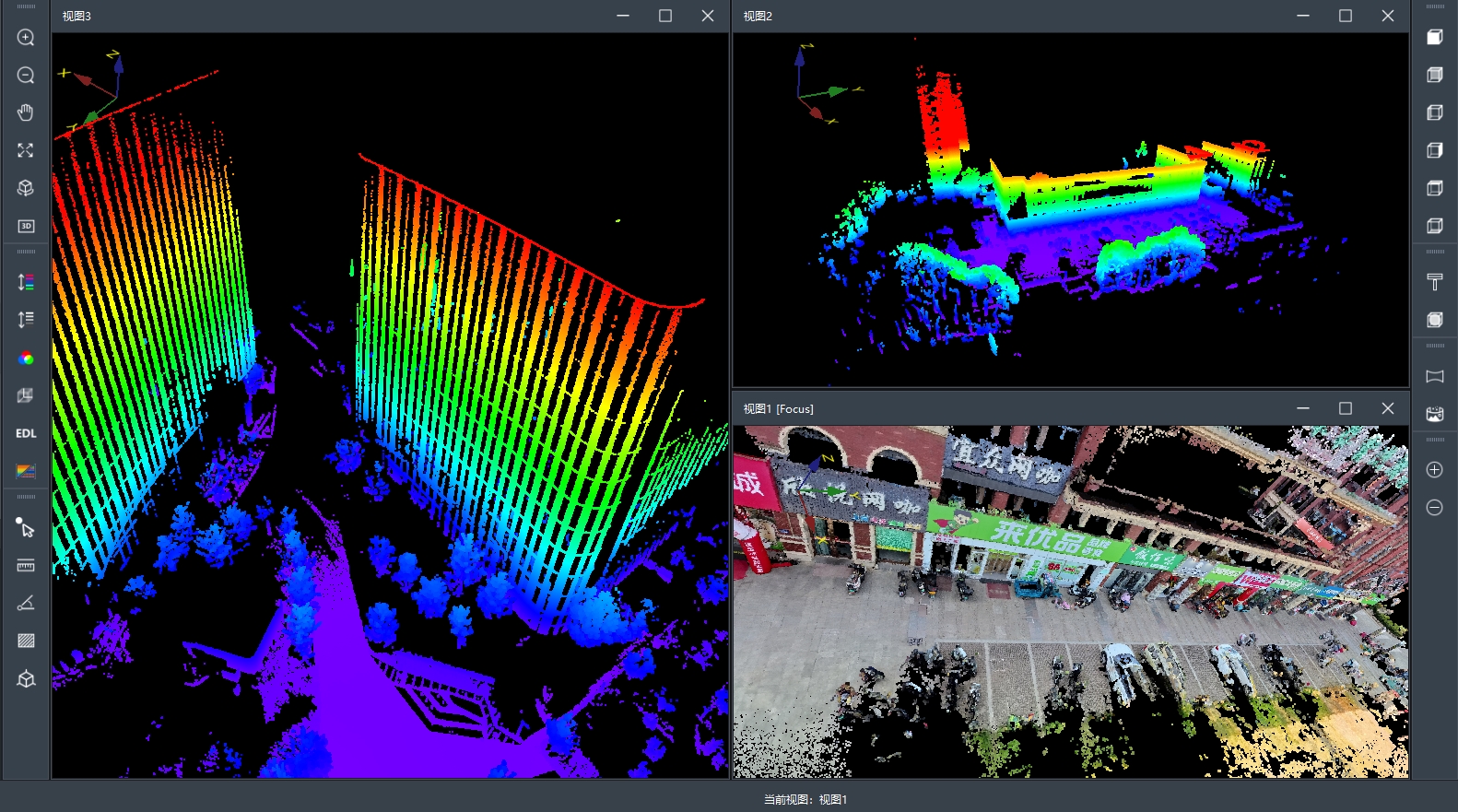 软件中间区域则为视图显示窗口,支持单一视图、双视图、多视图显示,主要为新建视图窗口、剖面视图、全景视图等视图窗口。