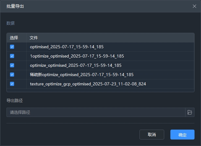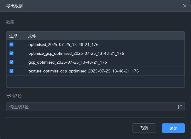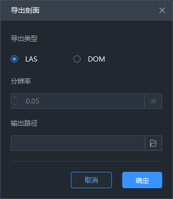 导出当前激活工程的数据,导出格式为.las,导出结果存储在选择的导出路径中。