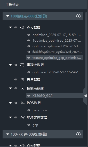 工程列表窗口中显示当前已打开的工程列表。并逐工程显示其包含的数据目录。