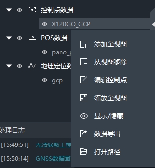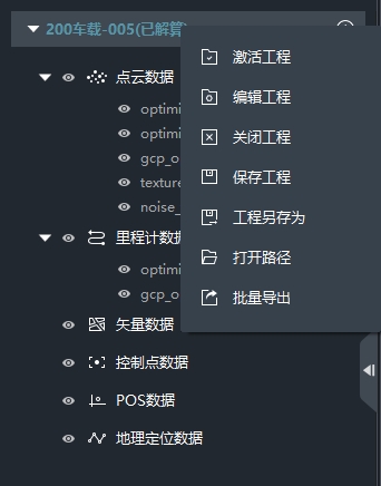 在工程列表窗口中,选中地理定位数据,右键,即可调用相关功能。