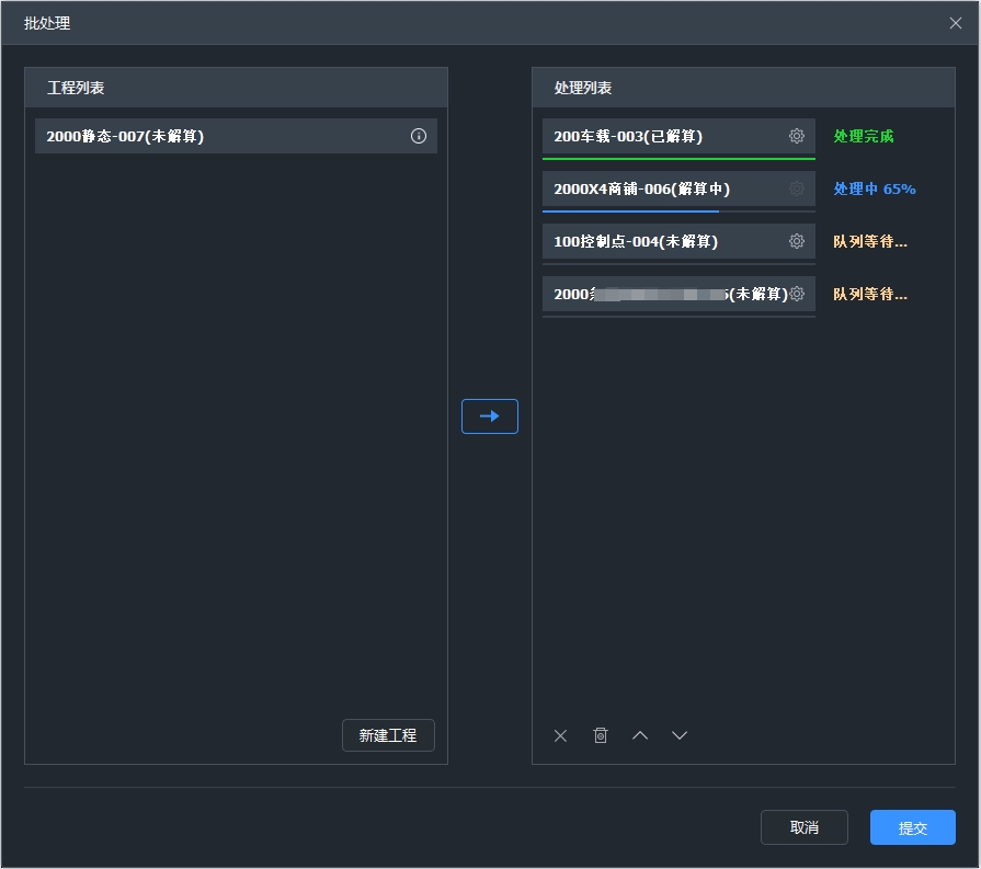 5.批处理页面关闭不会影响批处理进程,可再次通过批处理功能按钮打开该页面,进行查看批处理状态或者将新的待处理工程加入批处理队列。