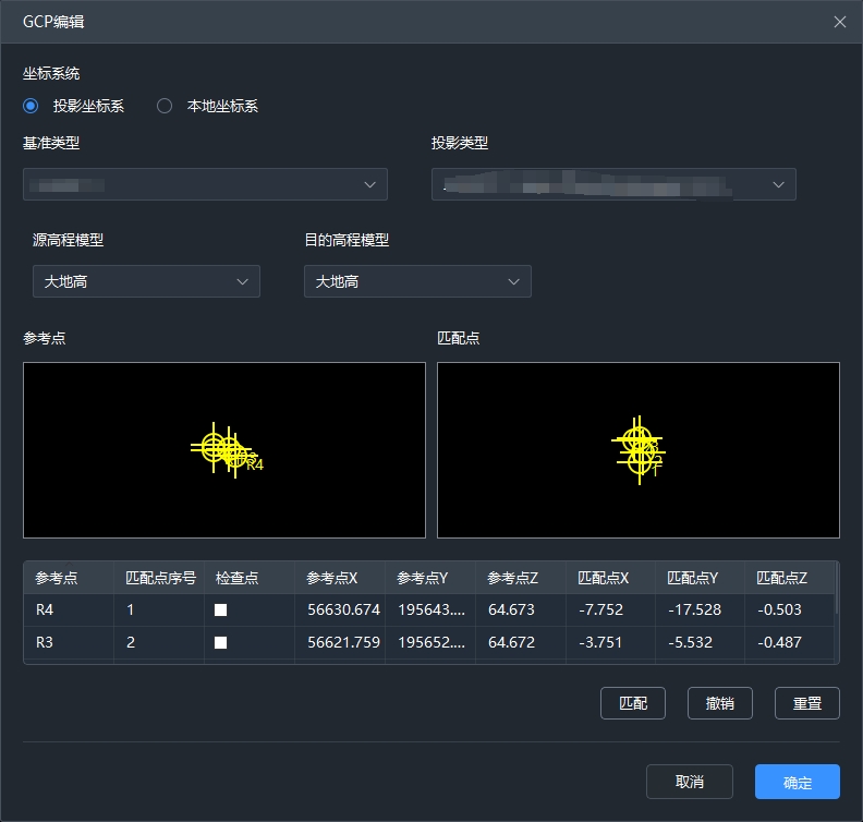 - 参考点、匹配点表格