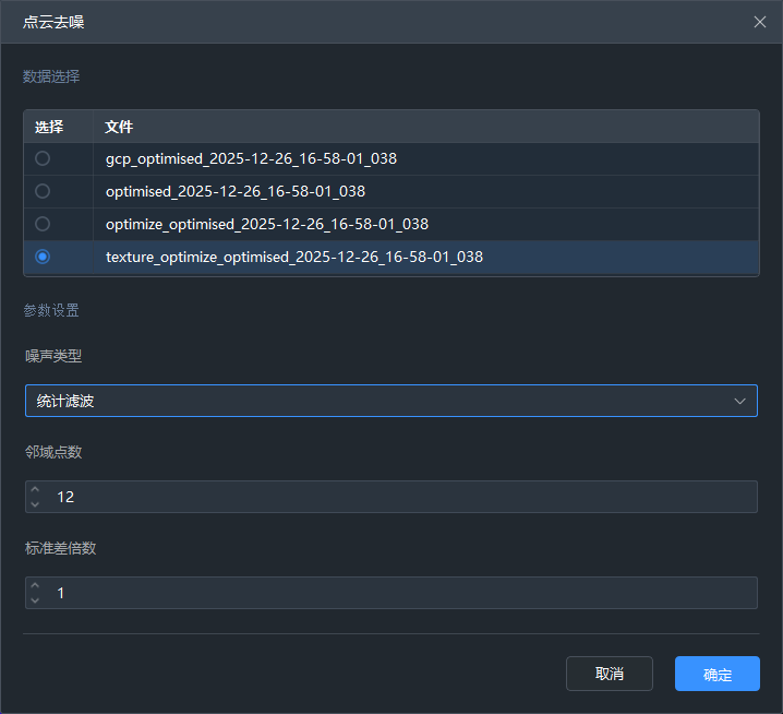 【统计噪声】通过统计学算法,对点云文件中的离散噪点进行过滤剔除。