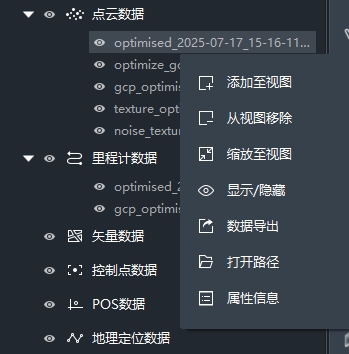 对所选POS数据执行视图添加、移除、显示/隐藏、导出等处理。