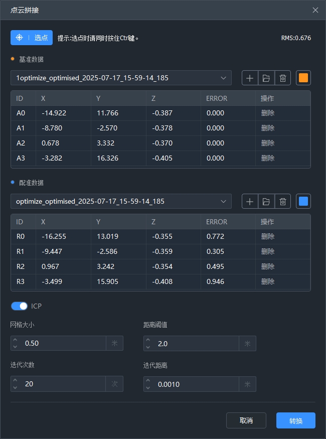 【刚体】基于控制点直接对解算后的点云做坐标转换;