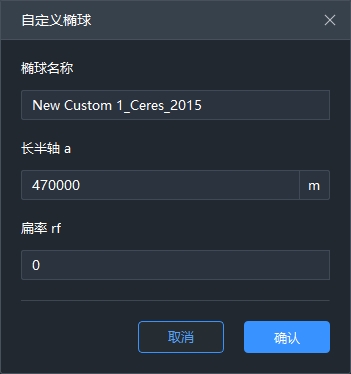 自定义椭球:输入椭球相关参数新建自定义椭球。
