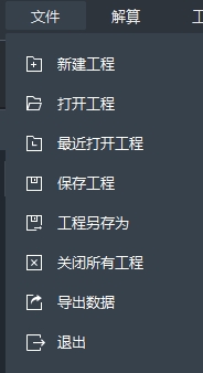 【文件】菜单中包括新建工程、打开工程、最近打开工程、保存工程、工程另存为、关闭所有工程、批量导出、退出。