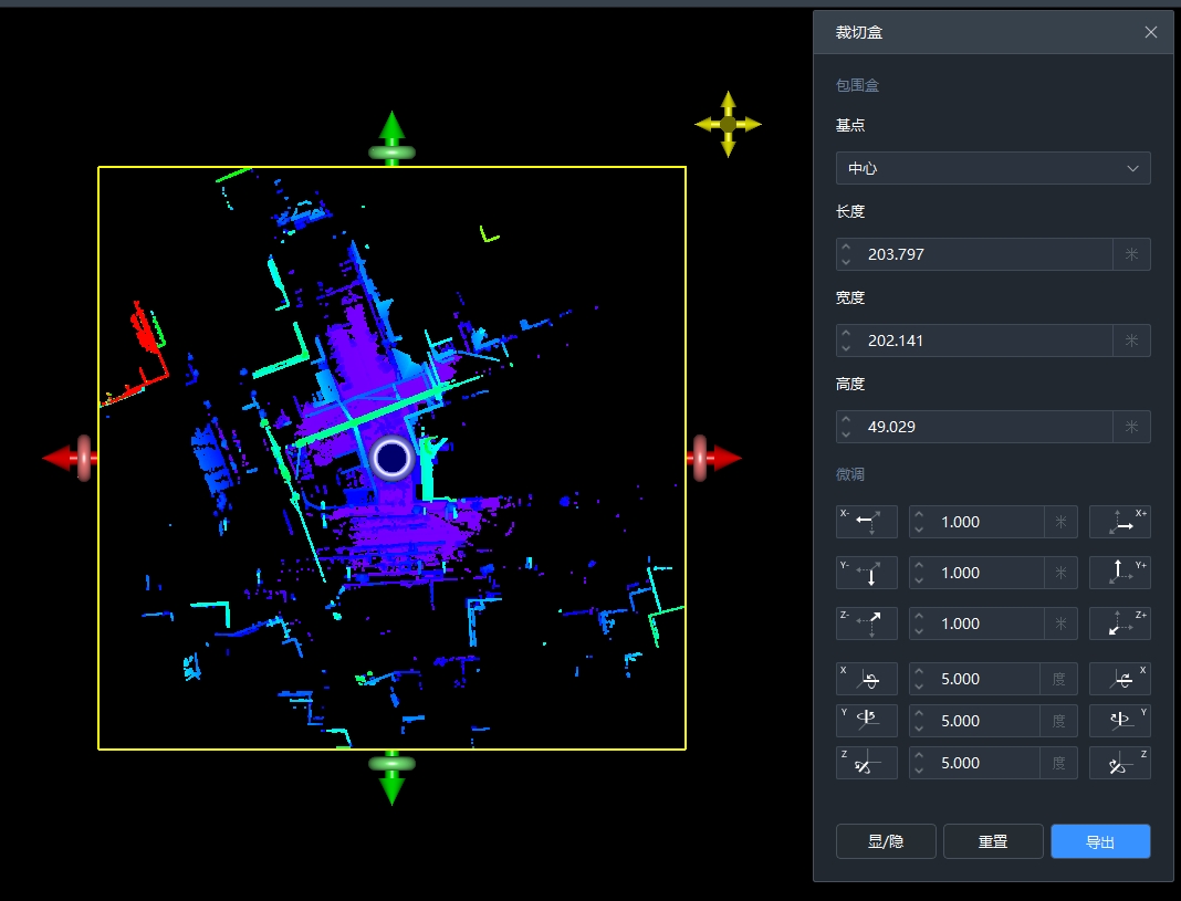 SLAM2000、SLAM200、SLAM1000设备数据需在点云赋色步骤后使用该功能。