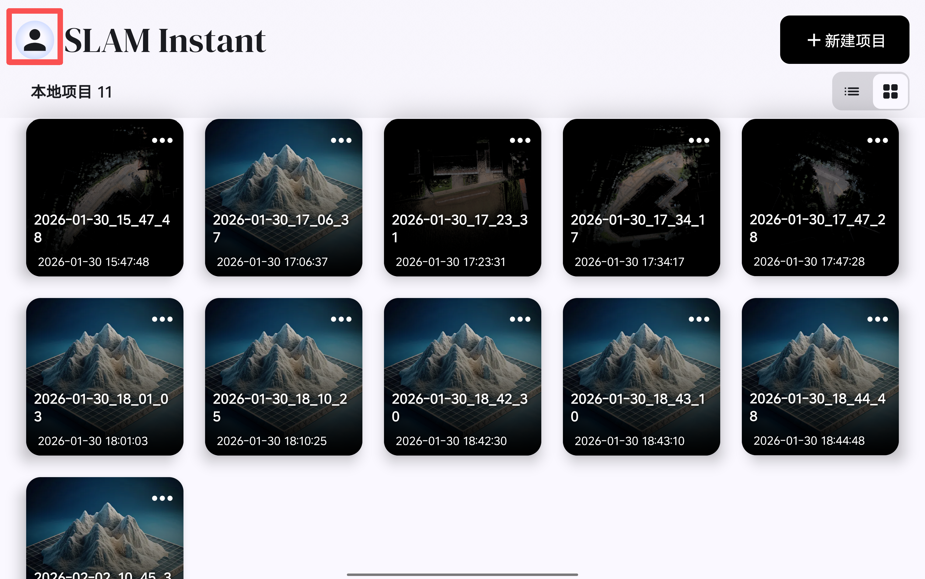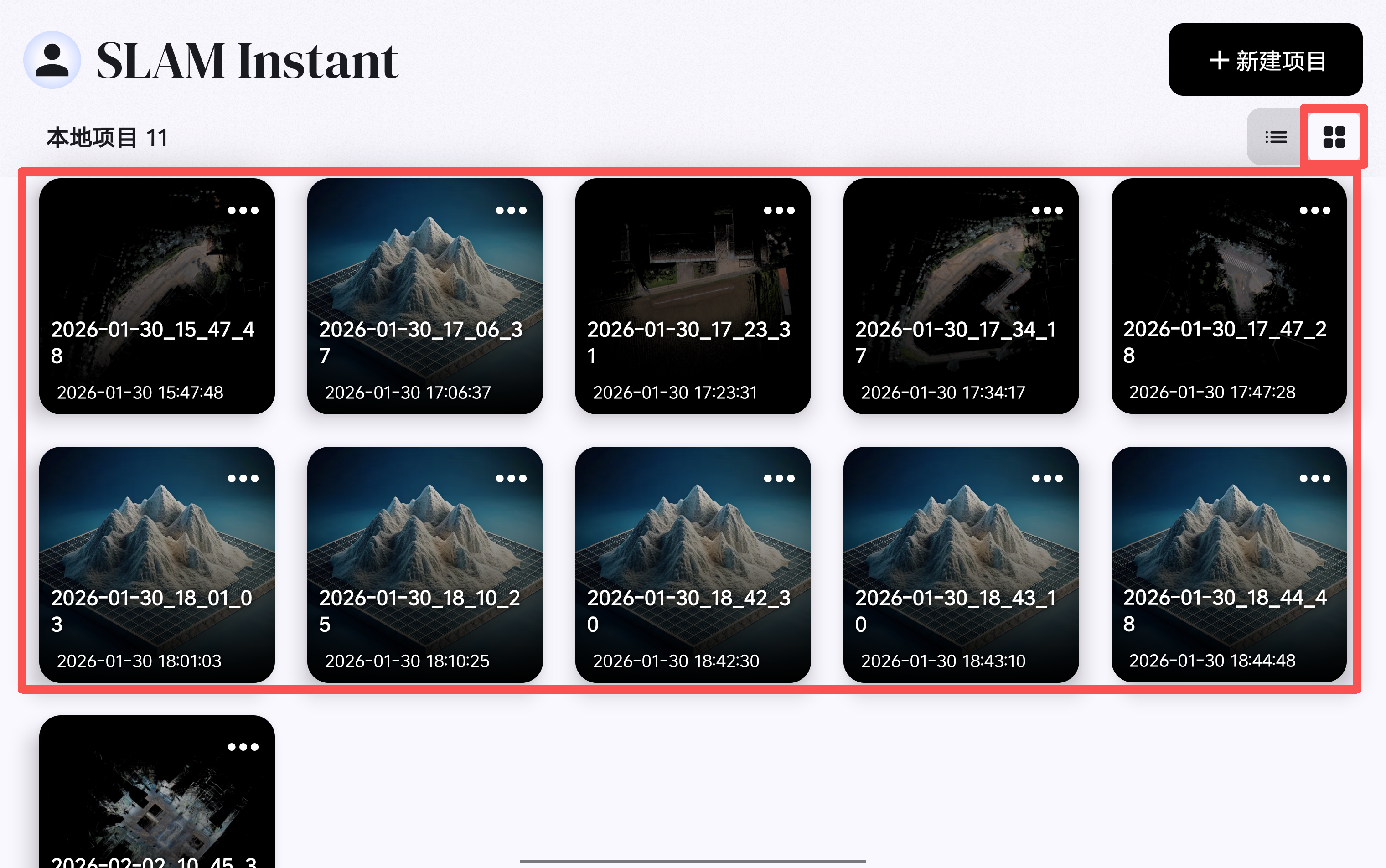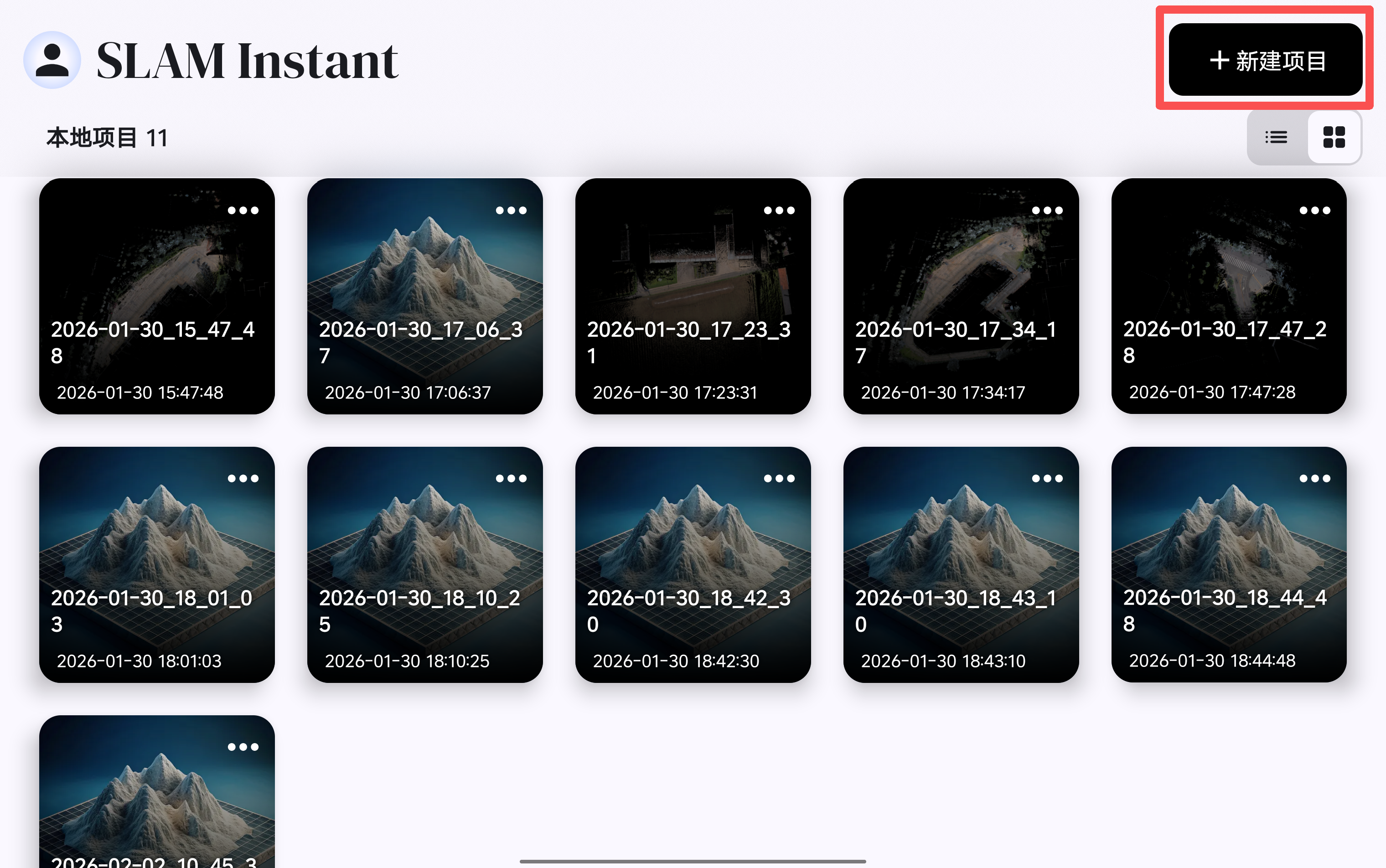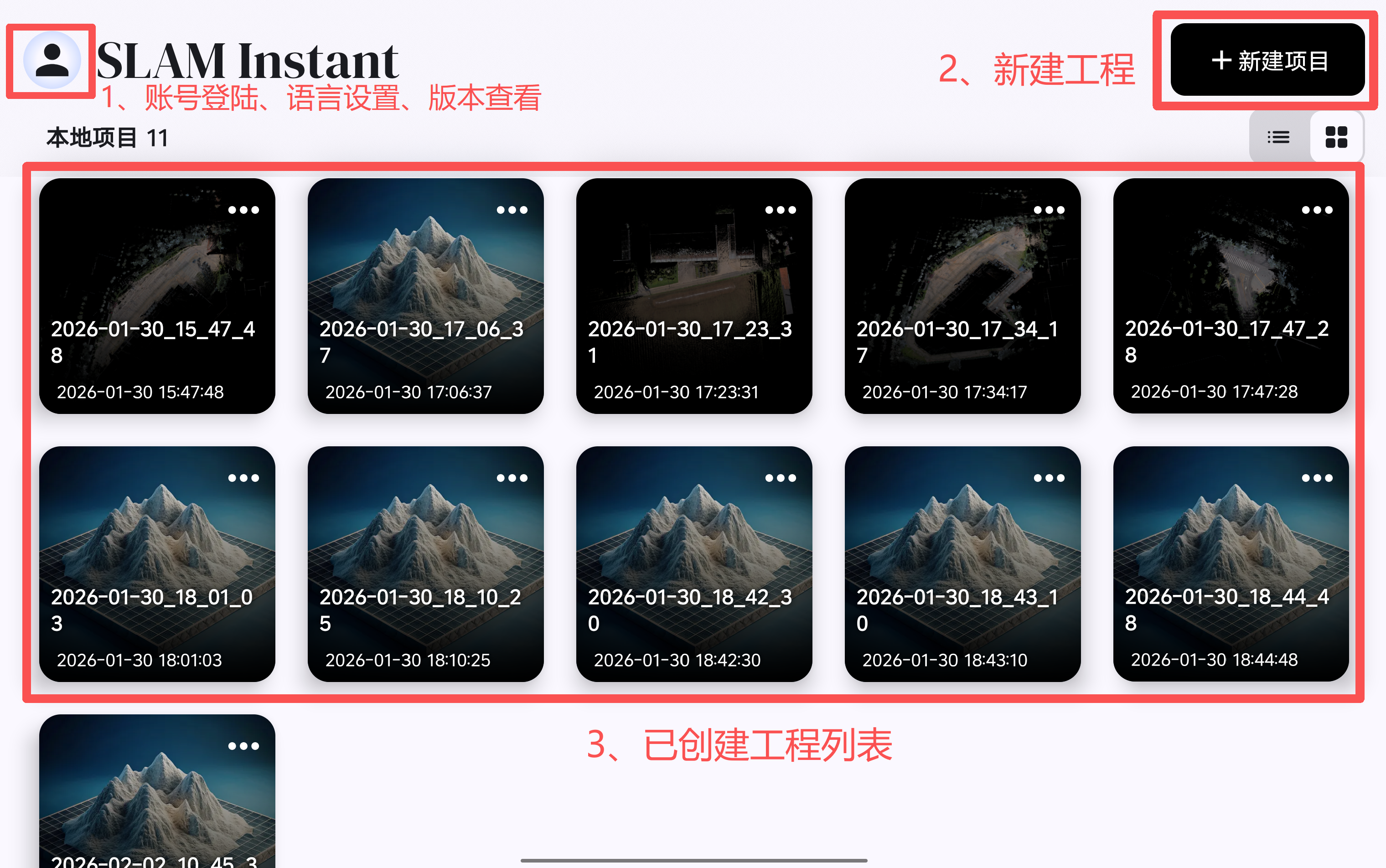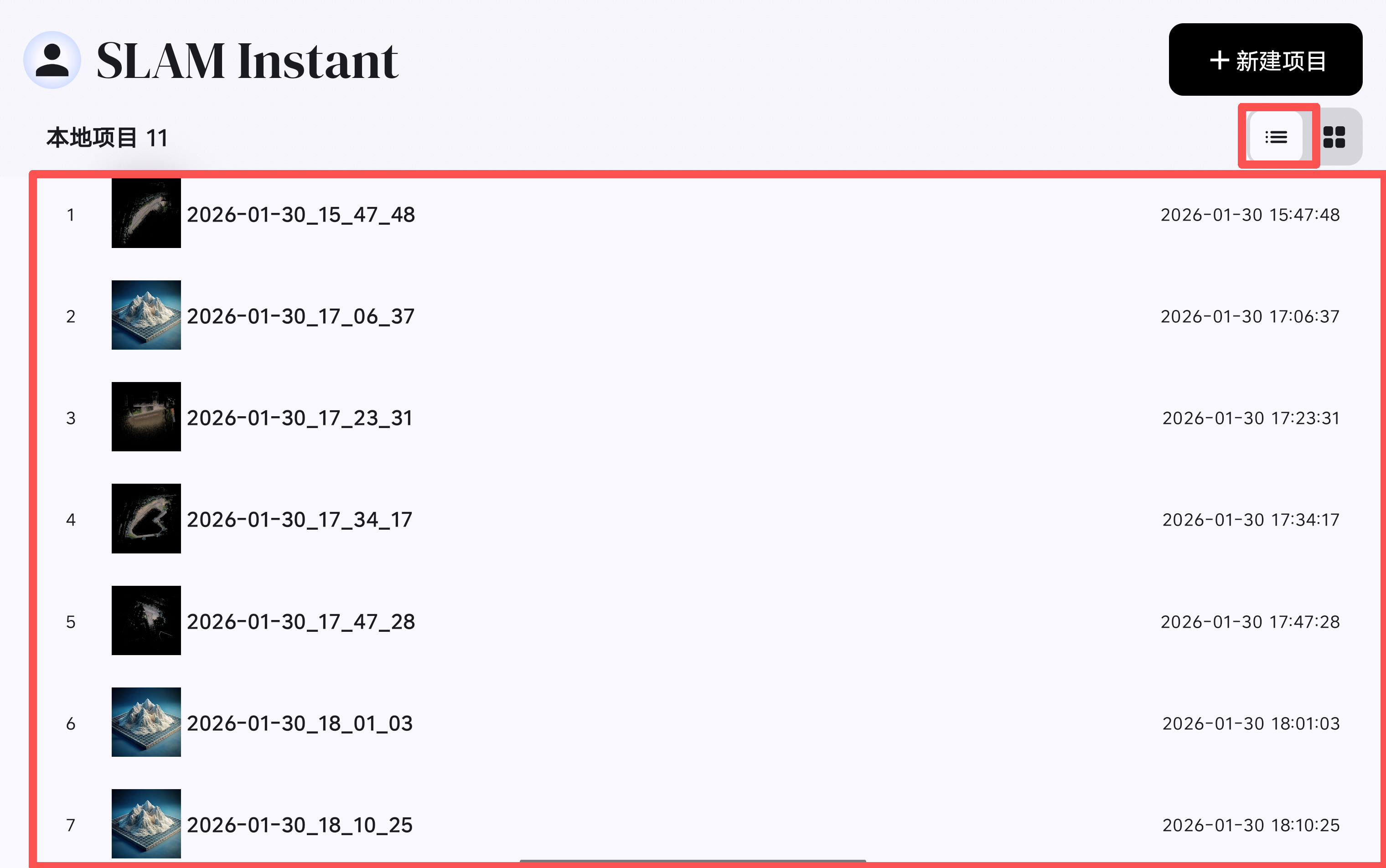 新建工程后,软件会以工程创建时间进行工程命名,可在软件的起始页面查看已创建的工程,已创建的工程可通过
