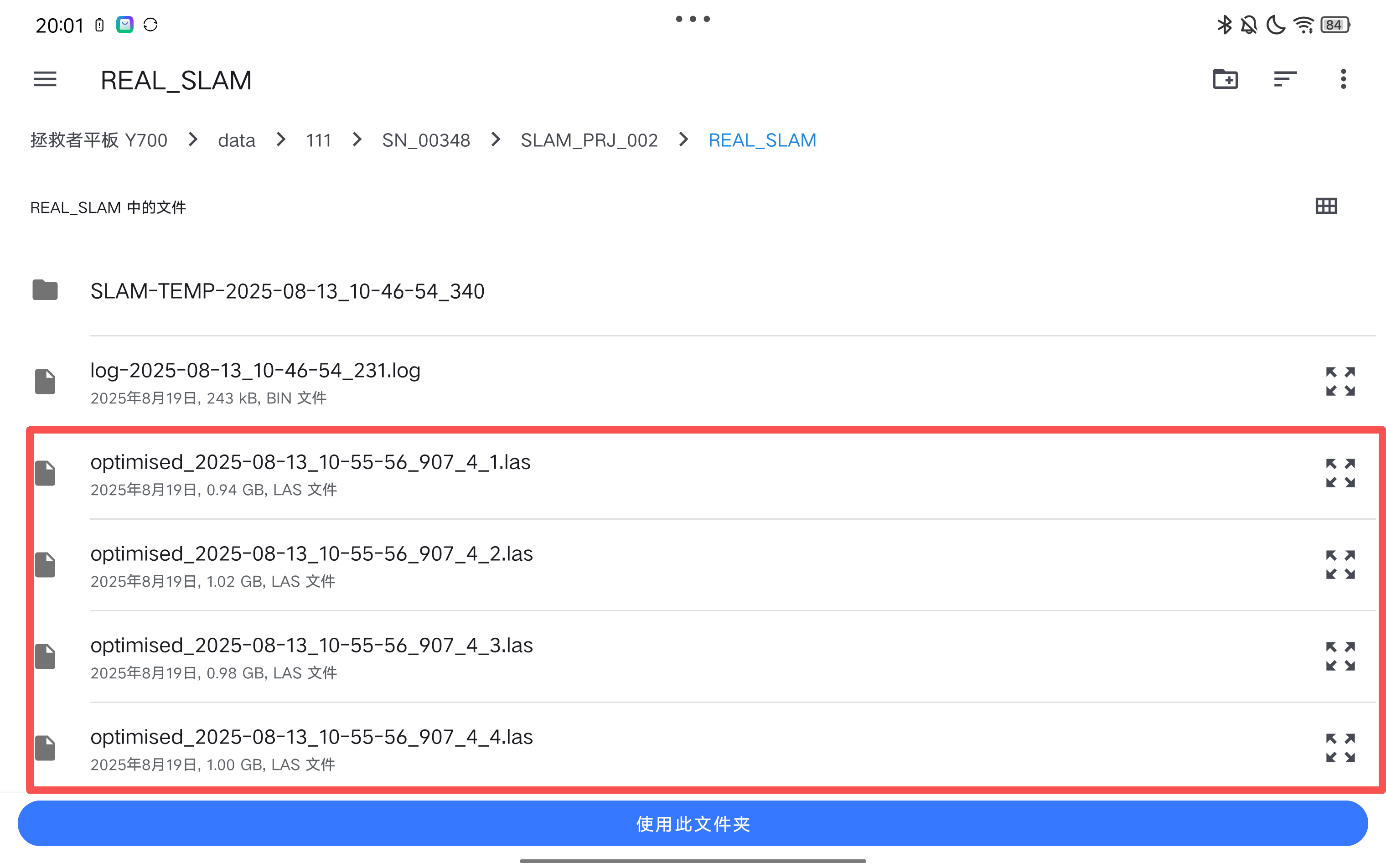 从本机或外部存储设备中选取需要导入的多个LAS文件所在的文件夹(文件夹中可含有非点云数据)即可创建工程。
