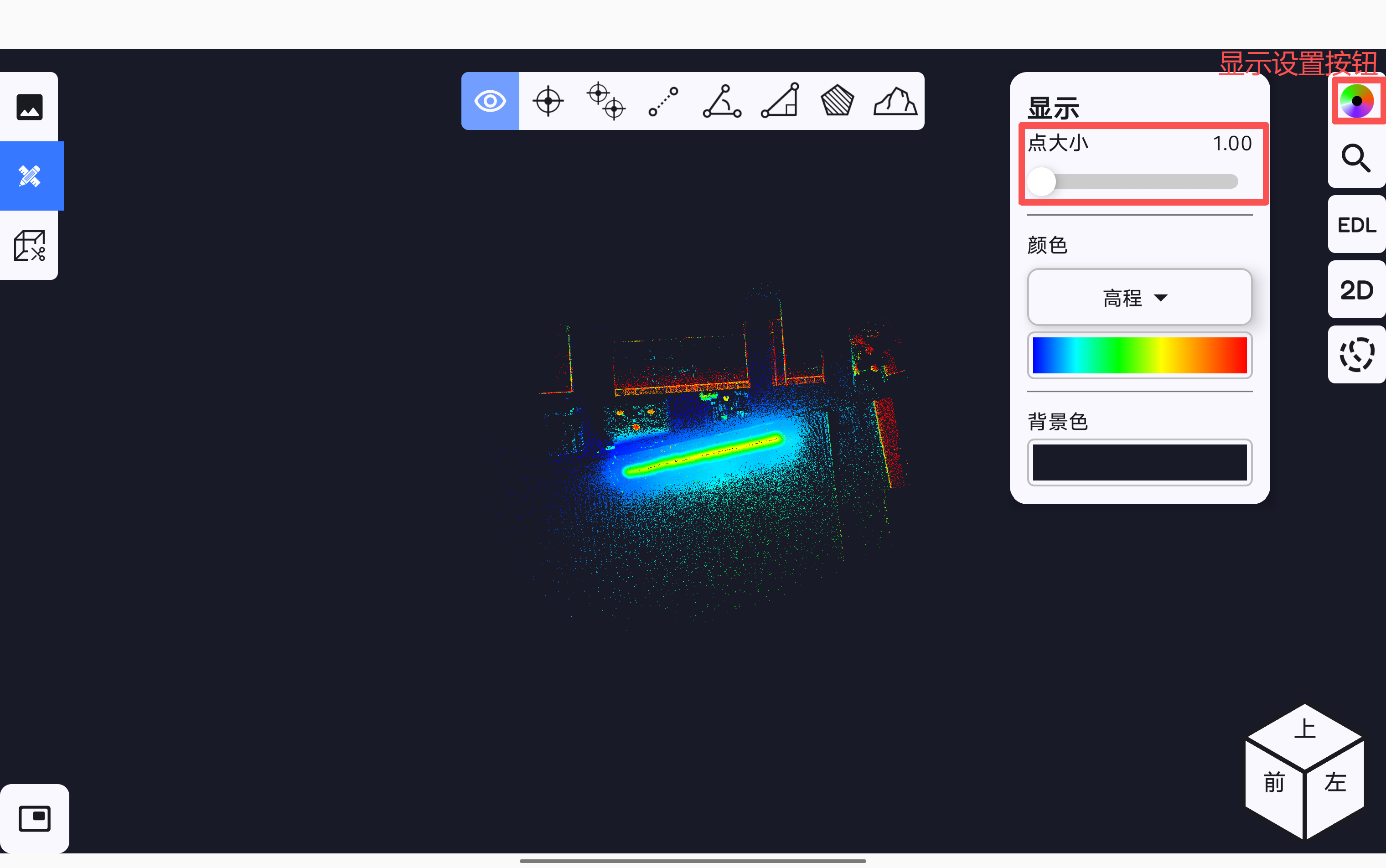显示设置按钮,在弹出的显示页面中可根据需要调节点云显示的点大小。