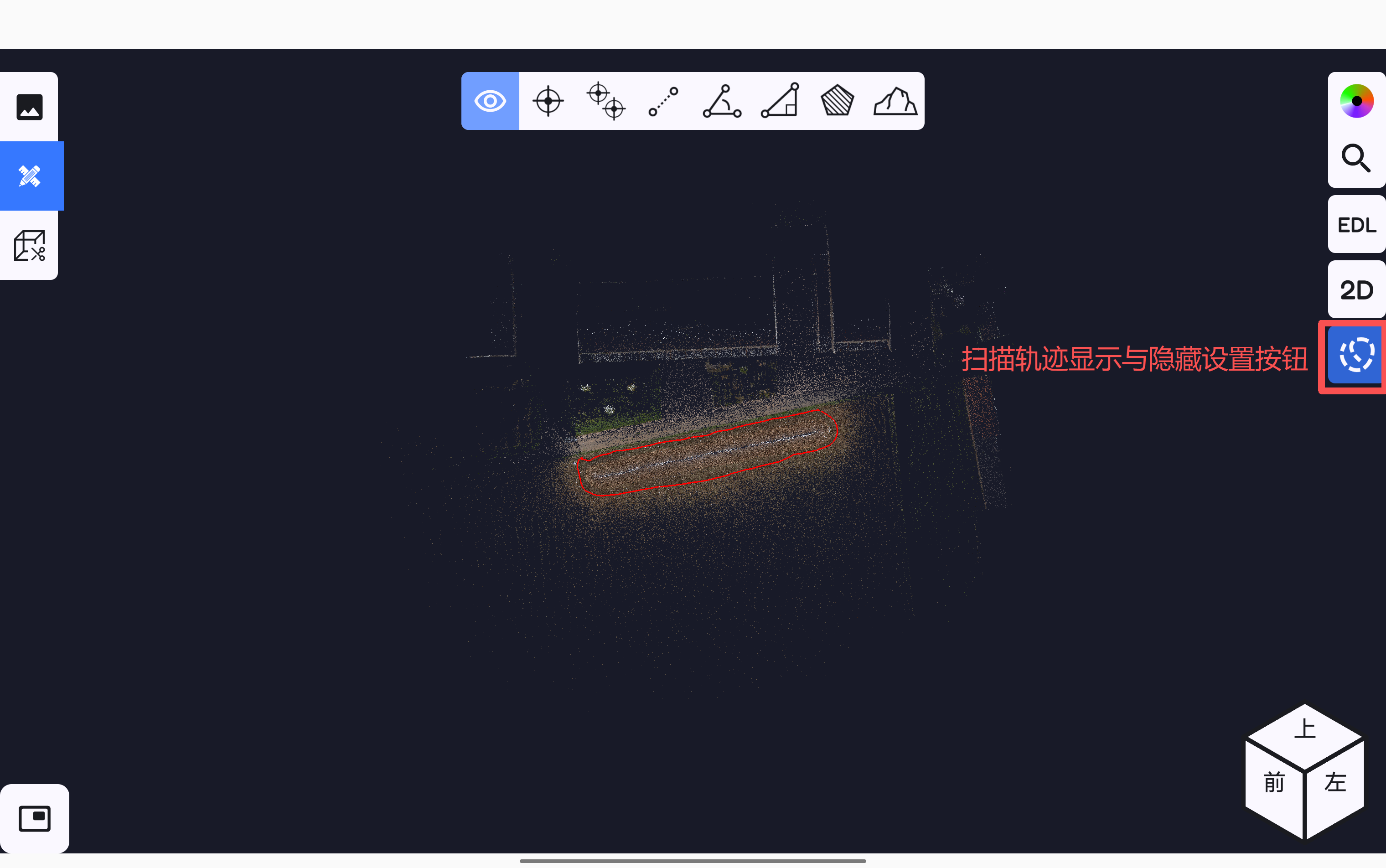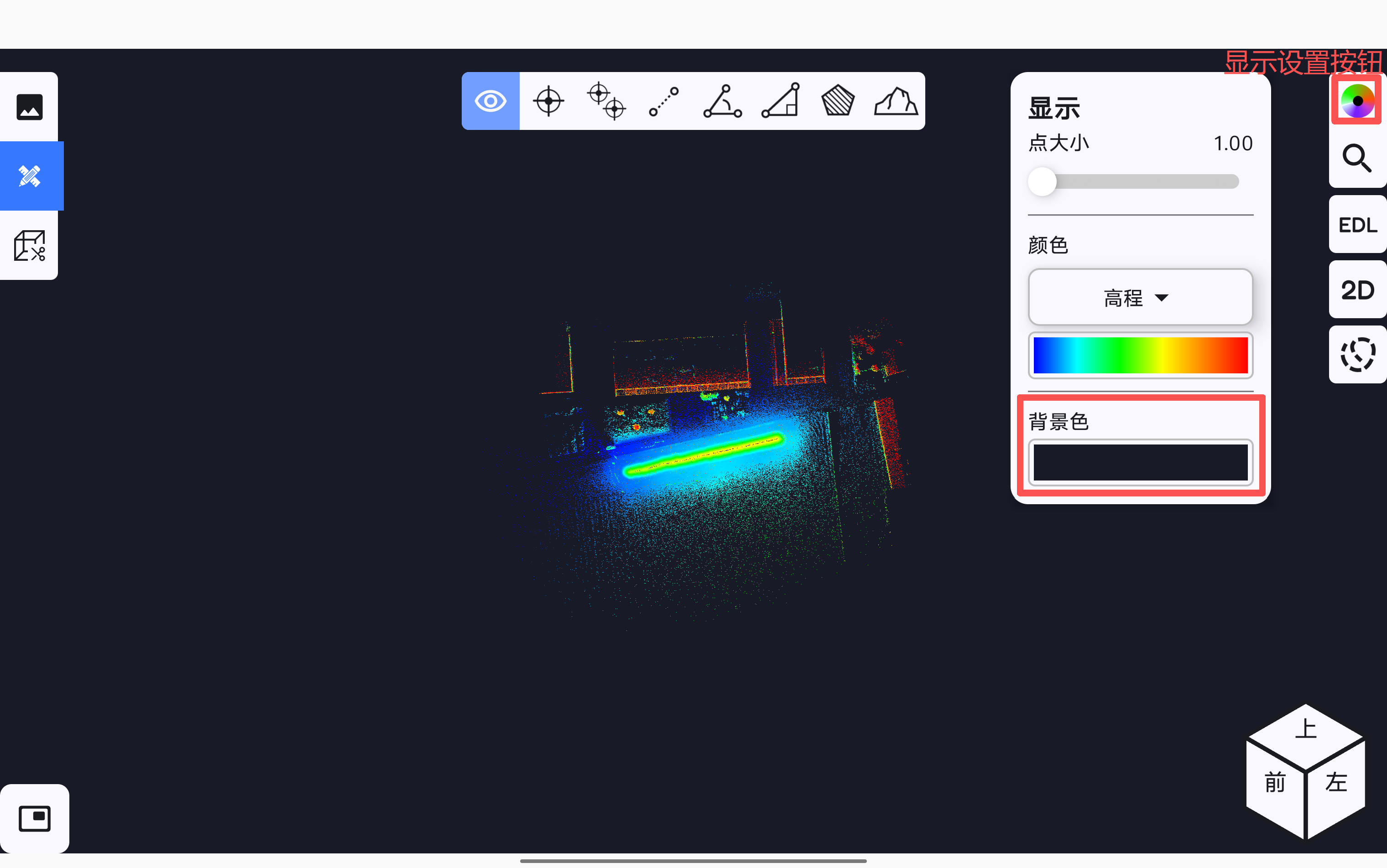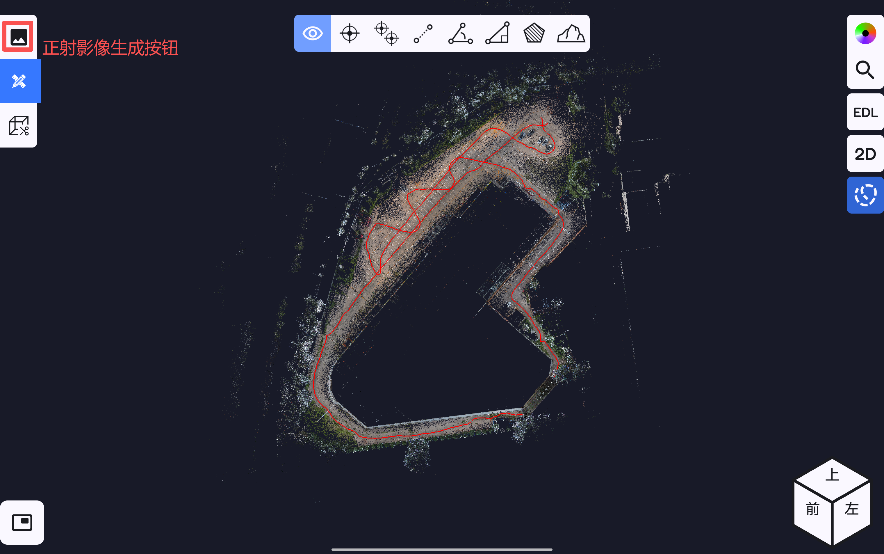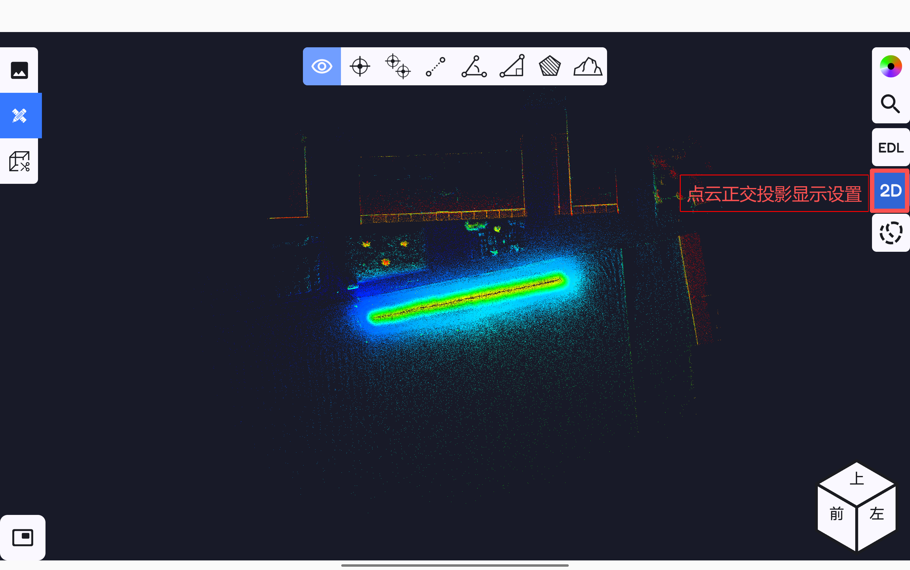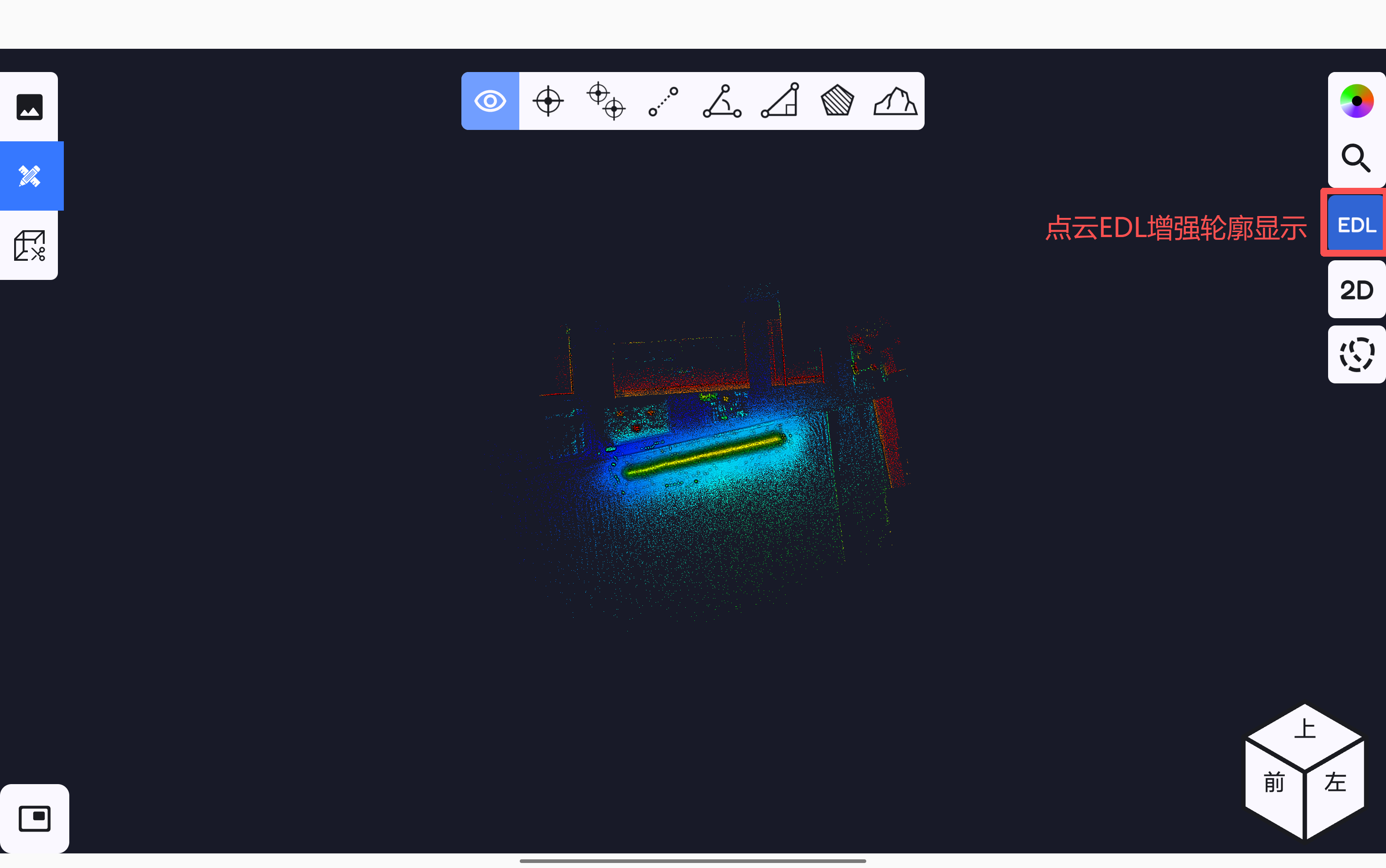 点云EDL增强轮廓显示设置按钮,软件测图页面的点云按EDL显示。
